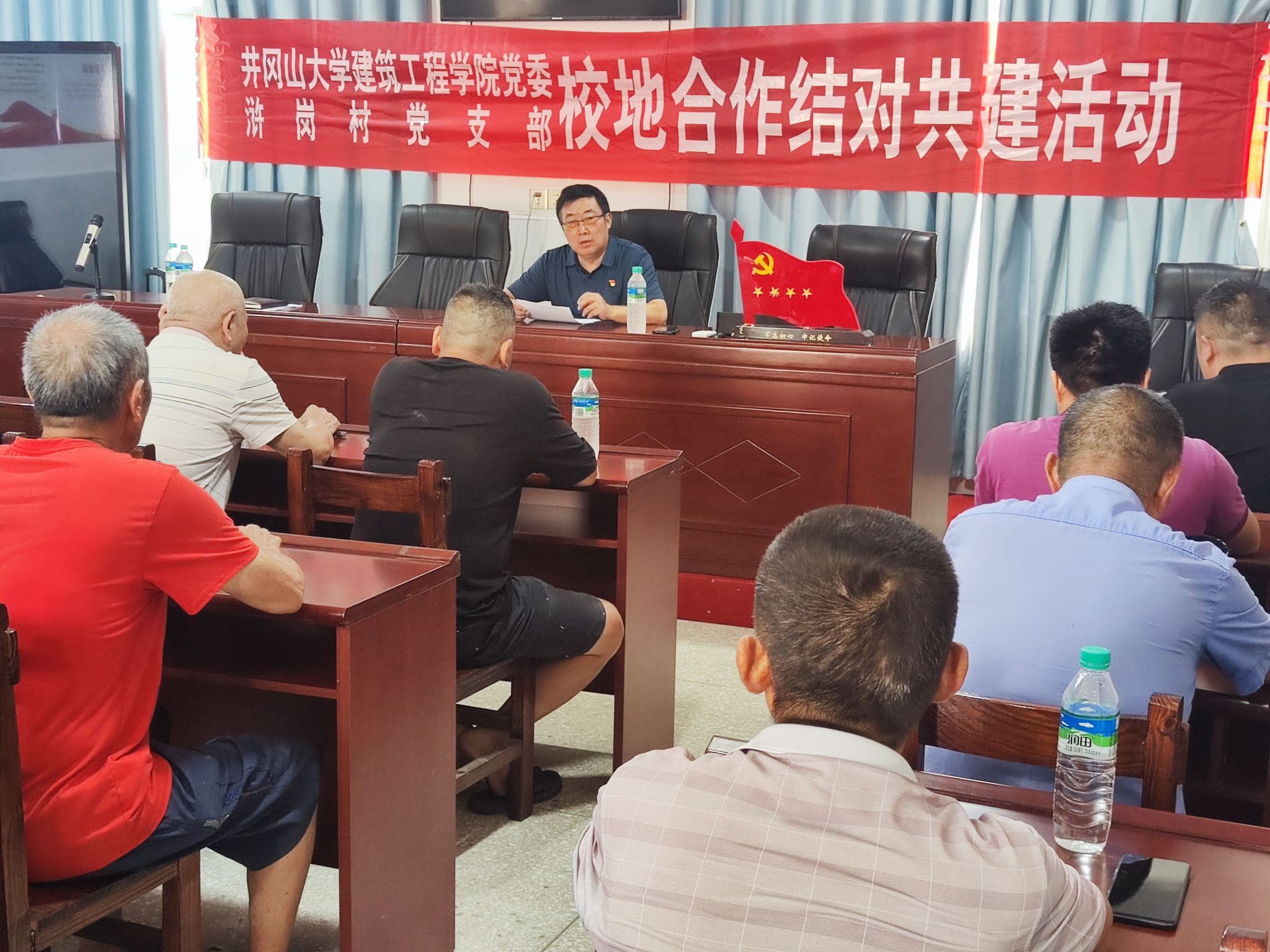 为庆祝中国共产党成立102周年,深入学习贯彻党的二十大精神,扎实推进与青原区河东街道浒岗村党支部的结对共建,7月15日,建筑工程学院党委书记陈京平以《发扬中华民族伟大精神,建设强大的祖国》为主题,给浒岗村党支部上了一堂专题党课,浒岗村全体党员40余人参与。