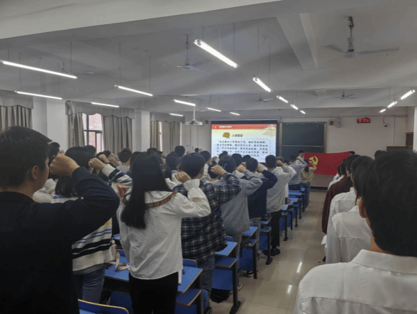 最后,全体师生党员庄严地举起右手,重温入党誓词。