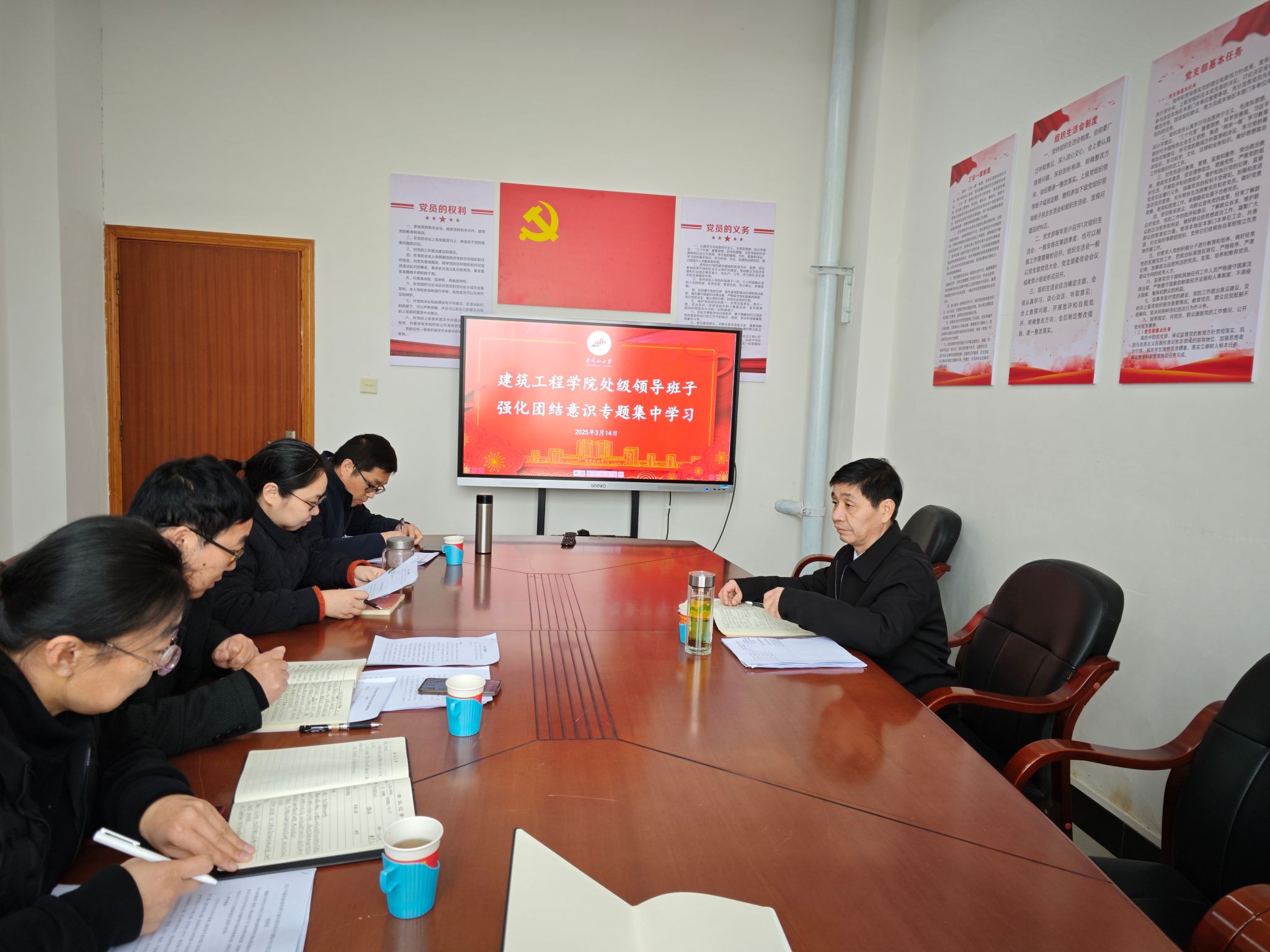 为进一步加强学院处级领导干部队伍建设,深化团队协作与凝聚力,提升整体工作效率与执行力,3月14日,我院领导班子成员在11A409会议室开展了以“强化团结意识,共筑发展蓝图”为主题的处级领导干部专题集中学习研讨,校党委常委、纪委书记彭西洪莅临指导并发表讲话。