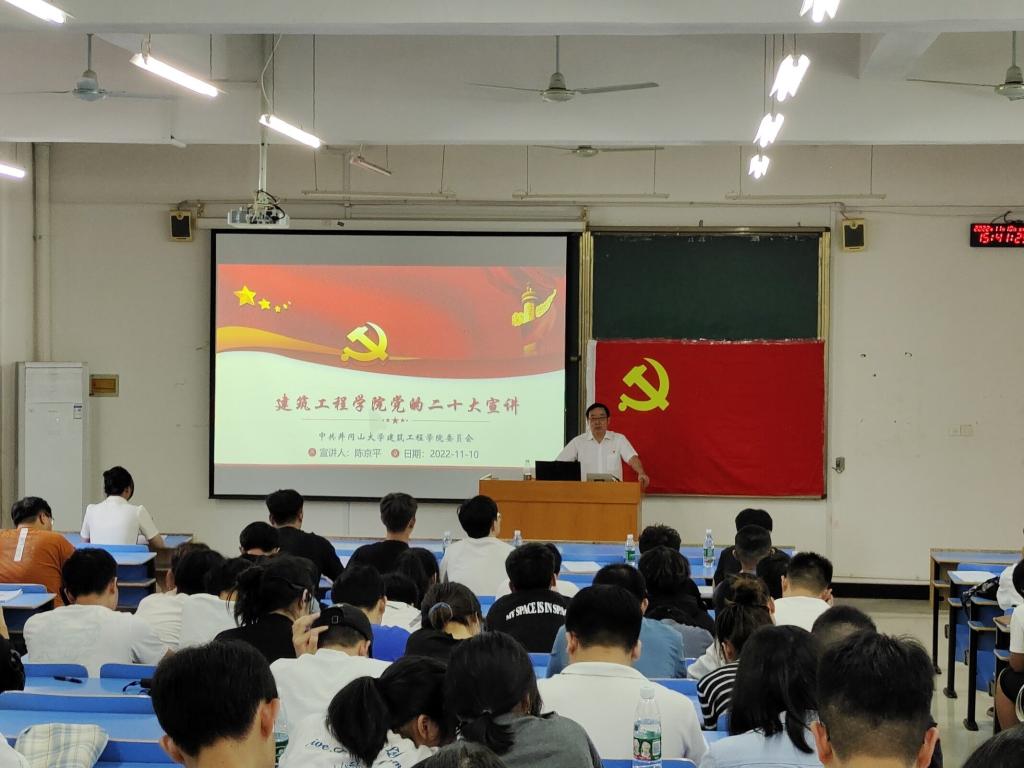 为深入学习宣传贯彻党的二十大精神,把全党全国各族人民的思想统一到党的二十大精神上来,把力量凝聚到党的二十大确定的各项任务上来,11月中旬,建筑工程学院在11栋B208教室、12栋A105会议室分别对学生党员和入党积极分子、全院教职工开展了两场党的二十大精神主题宣讲活动,宣讲由建筑工程学院党委书记陈京平主讲。