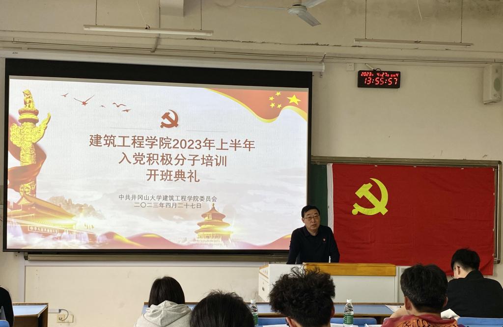 为学习贯彻习近平新时代中国特色社会主义思想、党的二十大精神,严格党员发展工作的重要程序,强化入党积极分子的思想认识,端正入党动机,4月27日,建筑工程学院举行2023年上半年入党积极分子培训班开班典礼,学院党组织书记及上半年确定的入党积极分子共计60余人参加。