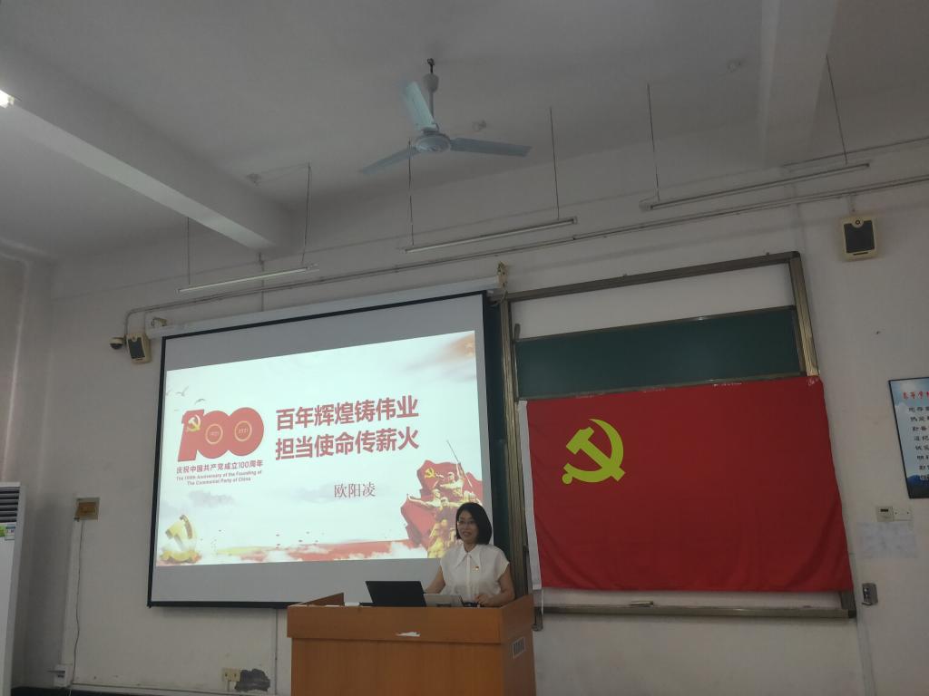 会议结束后,欧阳凌为全体师生党员上了题为“百年辉煌铸伟业,担当使命传薪火”的专题党课,她带领全体党员回顾党的奋斗历程,回顾学院走过的10年发展历程,明确了全体师生党员肩负的职责和使命。她强调,全院各级党组织和党员干部要“以功成不必在我功成必定有我”的境界,以更加务实的作风,更加过硬的本领,更加昂扬的斗志,团结带领全院师生员工相向而行,奋力前进,谱写学院事业发展新篇章。最后,欧阳凌勉励全体师生党员要争当对党忠诚的表率,要争当担当有为的表率,要争当清正廉洁的表率,以先进集体和个人为榜样,立足岗位,服务中心,勇挑重担、扎实工作,看齐争先,比学赶超,推进学院各项事业全面发展,为把学校早日建设成为特色鲜明的区域高水平大学而努力奋斗,为中国共产党成立100周年献礼。