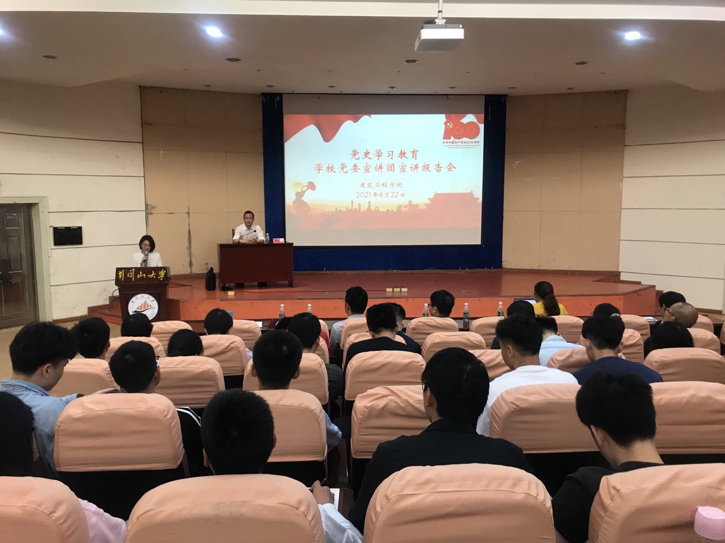 4月22日下午,党史学习教育校党委宣讲团成员、宣传部部长李裕福以《学百年党史,育时代新人》为主题,为建筑工程学院全体师生党员和入党积极分子近200人作党史学习教育宣讲报告。
