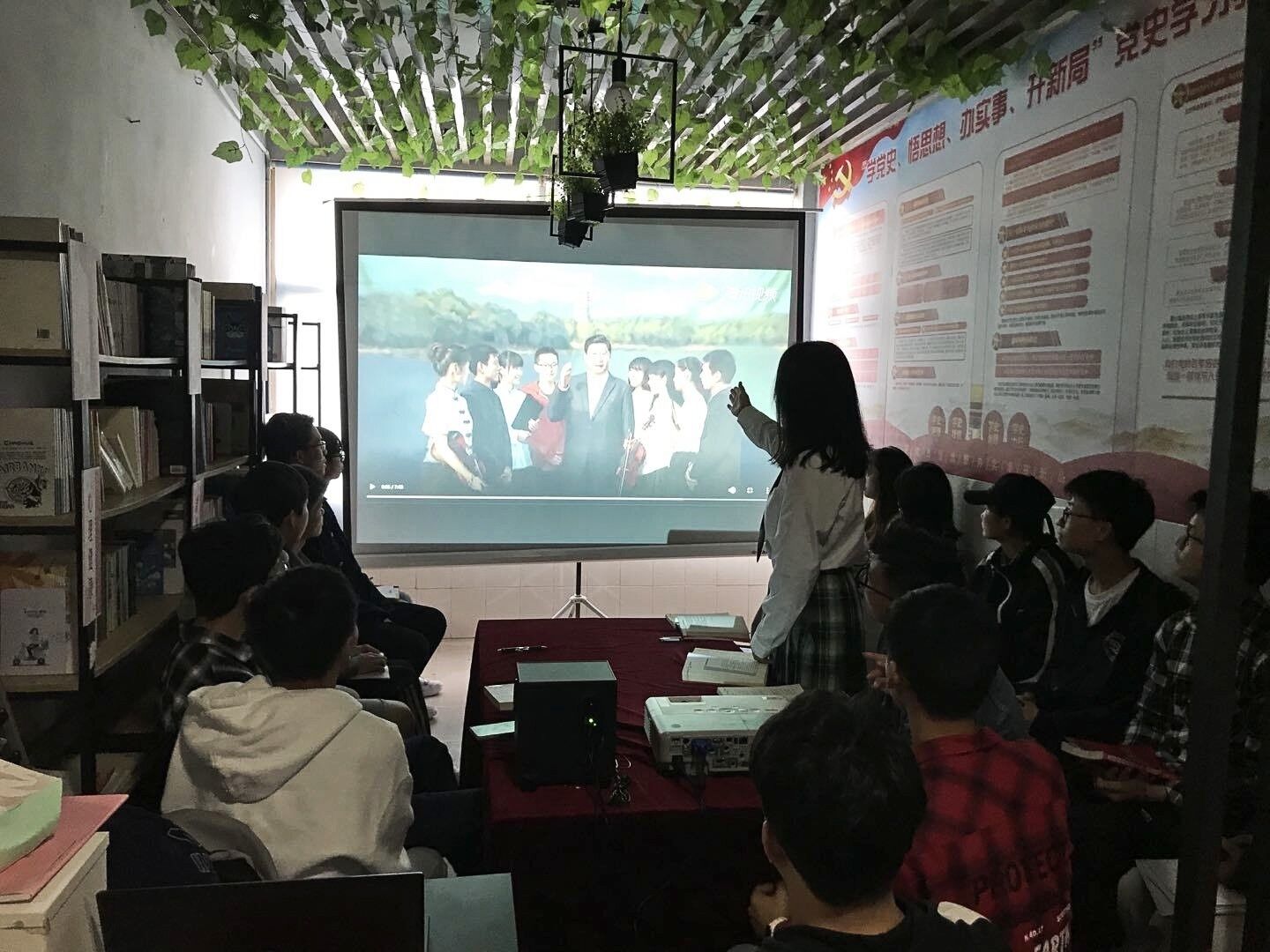 读书分享会后,第一党支部还在学生宿舍共享图书角组织各党小组成员集体诵读红色原著、开展红色沙龙、交流阅读体悟,把党史学习教育送入学生宿舍。