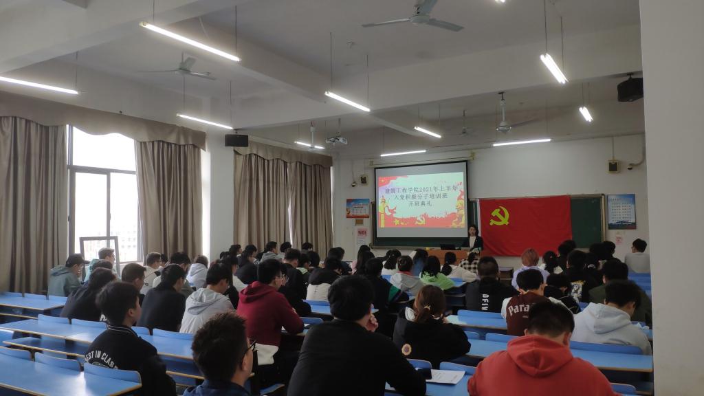 为学习贯彻习近平新时代中国特色社会主义思想、党的十九大精神、十九届五中全会、两会精神,强化党史学习教育,切实加强入党积极分子的教育培养工作,端正入党积极分子的入党动机,自觉接受党组织的培养、教育和考察,5月6日至5月21日,建筑工程学院举办了入党积极分子培训班,学院各党支部50余名入党积极分子参加培训。