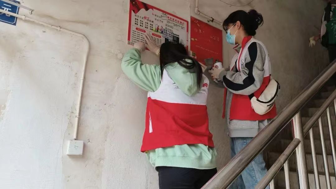 学院志愿者们走进吉福路社区,开展“情暖社区你我同行”志愿服务。他们纷纷拿起小铲子、除胶剂和扫帚,清理社区楼道小广告和道路垃圾,为吉福路社区营造了干净、整洁、舒适的居住环境,以实际行动传承雷锋精神,充分展现了服务群众、奉献社会的责任意识,发挥了先锋模范带头作用。