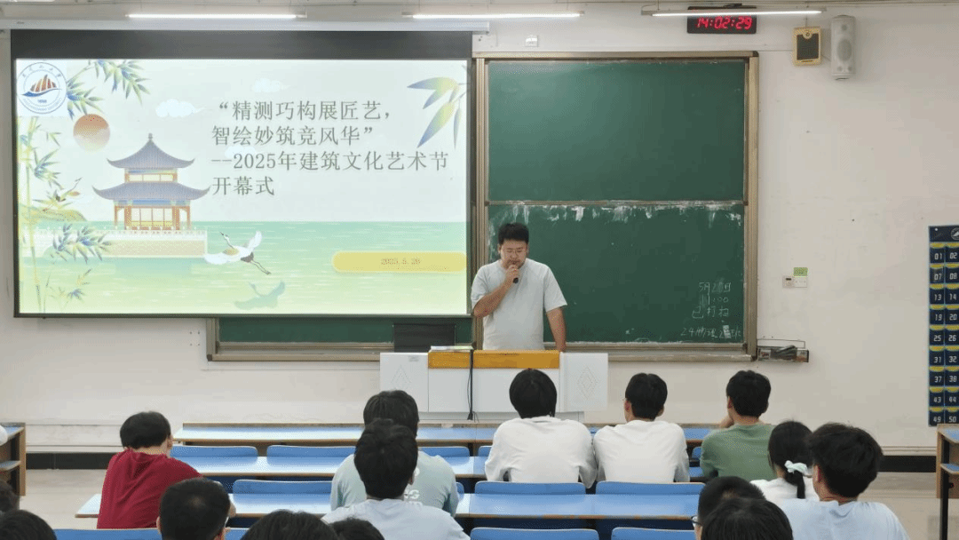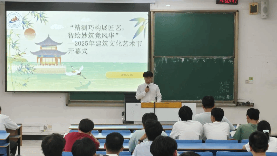 5月20日上午,建筑工程学院2025年建筑文化艺术节开幕式在11栋B104教室成功举办。院团委负责人王政凯出席活动并致辞,开幕式由邬旭嘉同学主持。