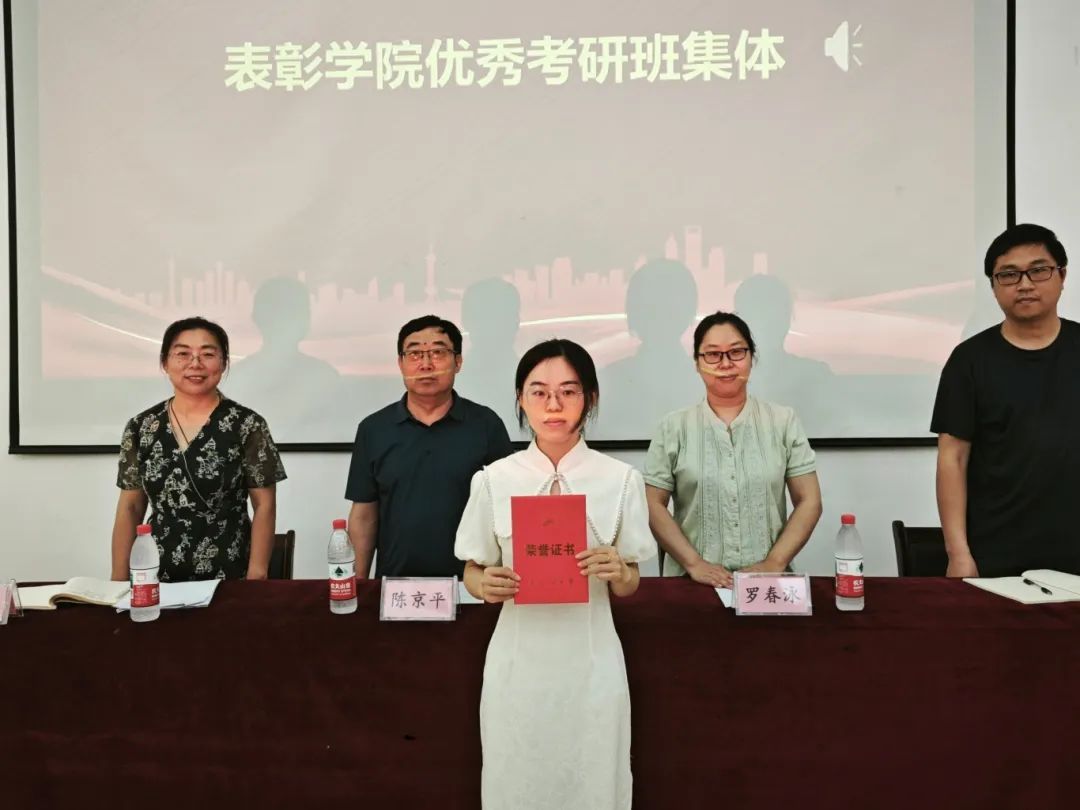 会议伊始,罗春泳院长作考研总结讲话。他详细介绍了学院2025届考研录取情况,充分肯定了学院在考研工作中取得的优异成绩,并对表现突出的集体和个人提出表扬。随后,党委书记陈京平为2025届考研优秀班级颁发荣誉证书,并作动员讲话。陈书记从思想引领、政策解读、情感支持等方面,鼓励同学们树立考研信心,明确奋斗目标,以饱满的热情投入到备考中。