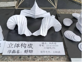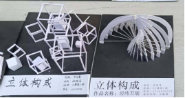 展出以优秀瓦楞纸模型作品为主,模型作品有可供观者进入、体验的瓦楞纸凉亭、座椅,还有形变多样的立体构成模型以及精致美观变化丰富的空间构成模型,充分展现了同学们团结奋进、积极进取、开拓创新的精神。