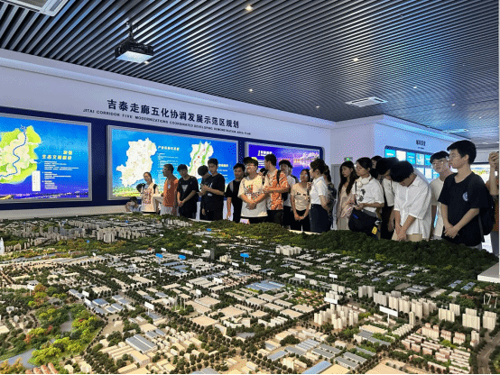 师生党员和“八角楼班”学员在解说员的带领下参观了吉安市城市展览馆,大家来到吉安市地区模型前,身临其境地了解了吉安地域文化和未来发展蓝图。城市发展馆中的总体规划模型沙盘让大家印象深刻,吉安“一城四区,两江三岸”的城市空间布局和规划建设直观地映入眼帘,让大家对吉安的发展格局有了整体的认识,更直观地感受到了吉安的新变化、新发展、新面貌。