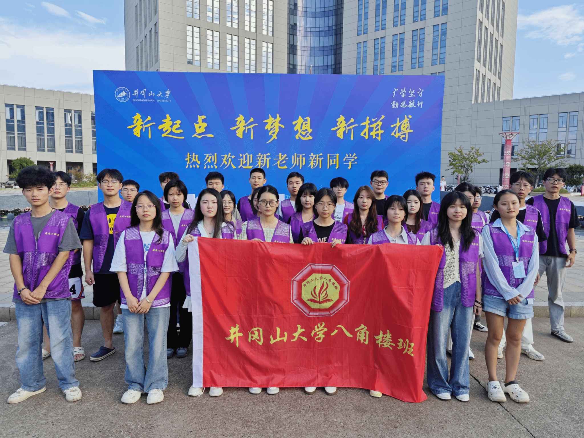 金秋送爽,丹桂飘香。为确保井冈山大学建筑工程学院2025级新生顺利报到、快速融入校园,院八角楼班学员充分发挥先锋模范作用,组建专项迎新志愿服务队,于9月3日下午开始在学院报到点、校园关键路口等地开展全方位志愿服务,用热情与责任为新生开启大学“第一扇温暖之门”。