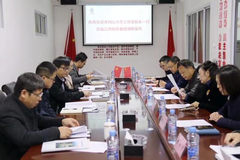 为响应学校向应用型转型发展号召,深入开展院企合作,12月1日上午,井冈山大学建筑设计研究院名誉院长王珍吾、建筑工程学院院长罗春泳率学院及设计院相关人员赴江西恒信集团就院企合作事宜进行调研座谈。江西恒信集团董事长刘恒军出席了座谈会,常务副总裁祖建辉、副总裁刘小珍、党委专职副书记万林华、党委副书记钱爱云及相关企业负责人参加了座谈交流。