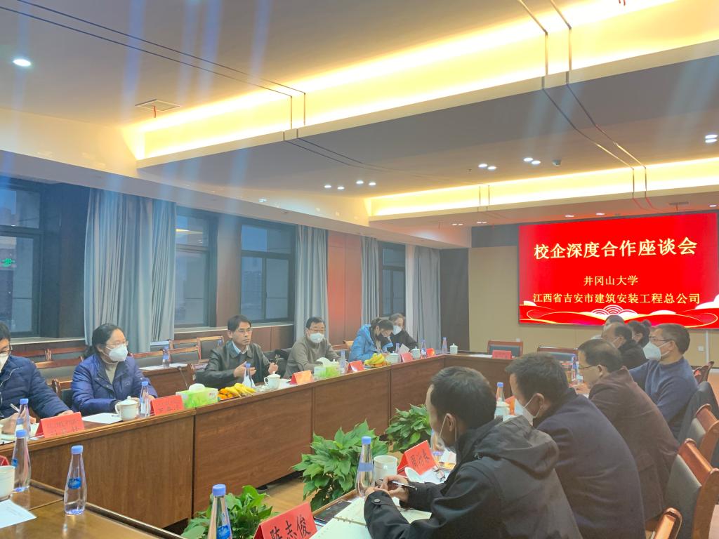 为加强校企合作,深化产教融合,拓展就业渠道,1月8日下午,在校党委常委、副校长刘利民的带领下,建筑工程学院党委书记陈京平,院长罗春泳,副院长梁爱民、刘良林等一行7人前往吉安市建筑安装工程总公司就产学研合作展开进一步交流。市城投公司党组副书记、总经理詹军庆,市建筑安装工程总公司党委书记、总经理李梅轩等公司领导及相关负责人出席座谈。