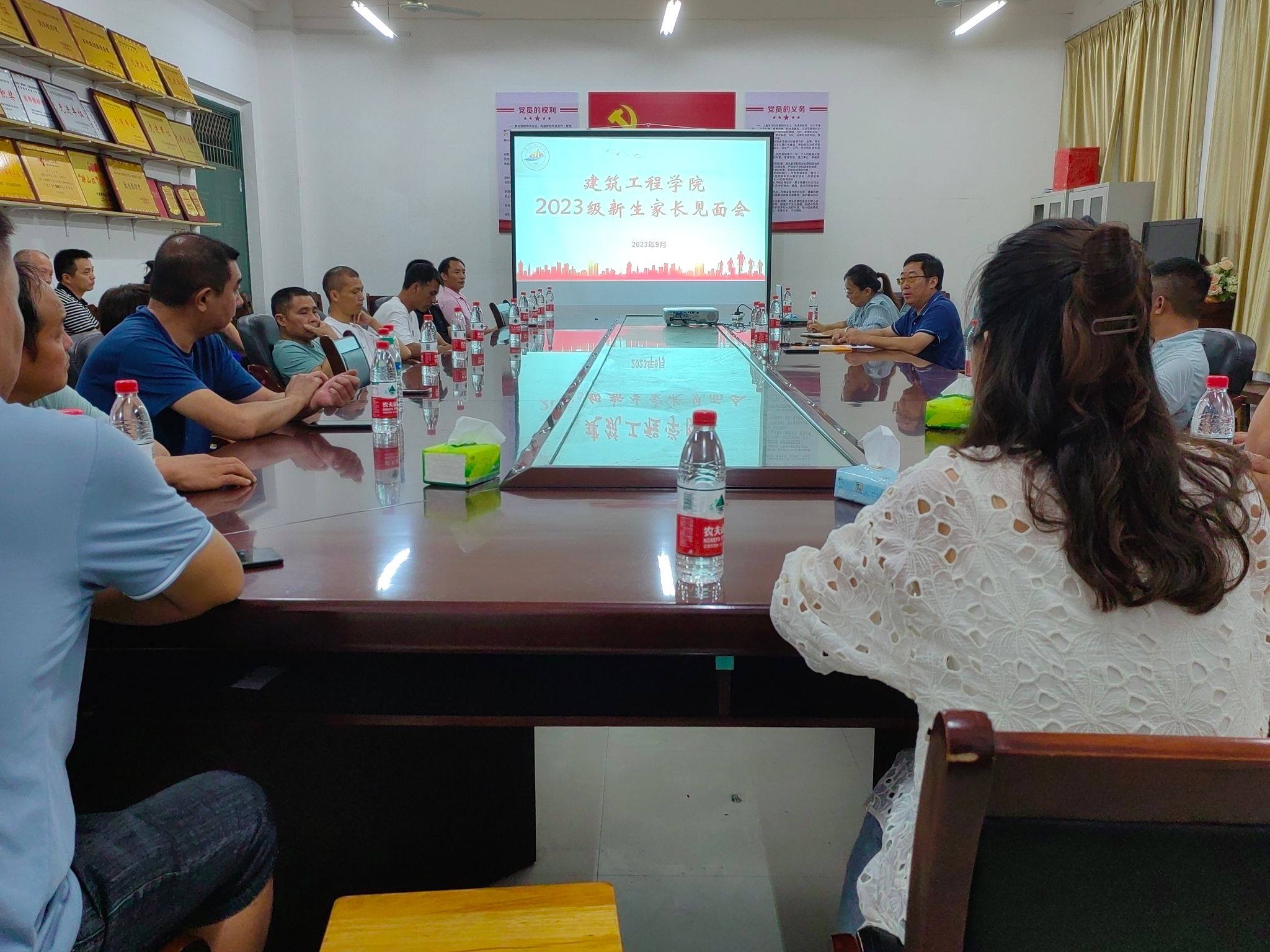 为进一步加强家校协同育人,深入推进“三全育人”工作,提高人才培养质量。9月6日下午,建筑工程学院在12栋A105会议室召开2023级新生家长见面会,党委书记陈京平、副院长梁爱民、学生科老师及部分新生家长参加会议。
