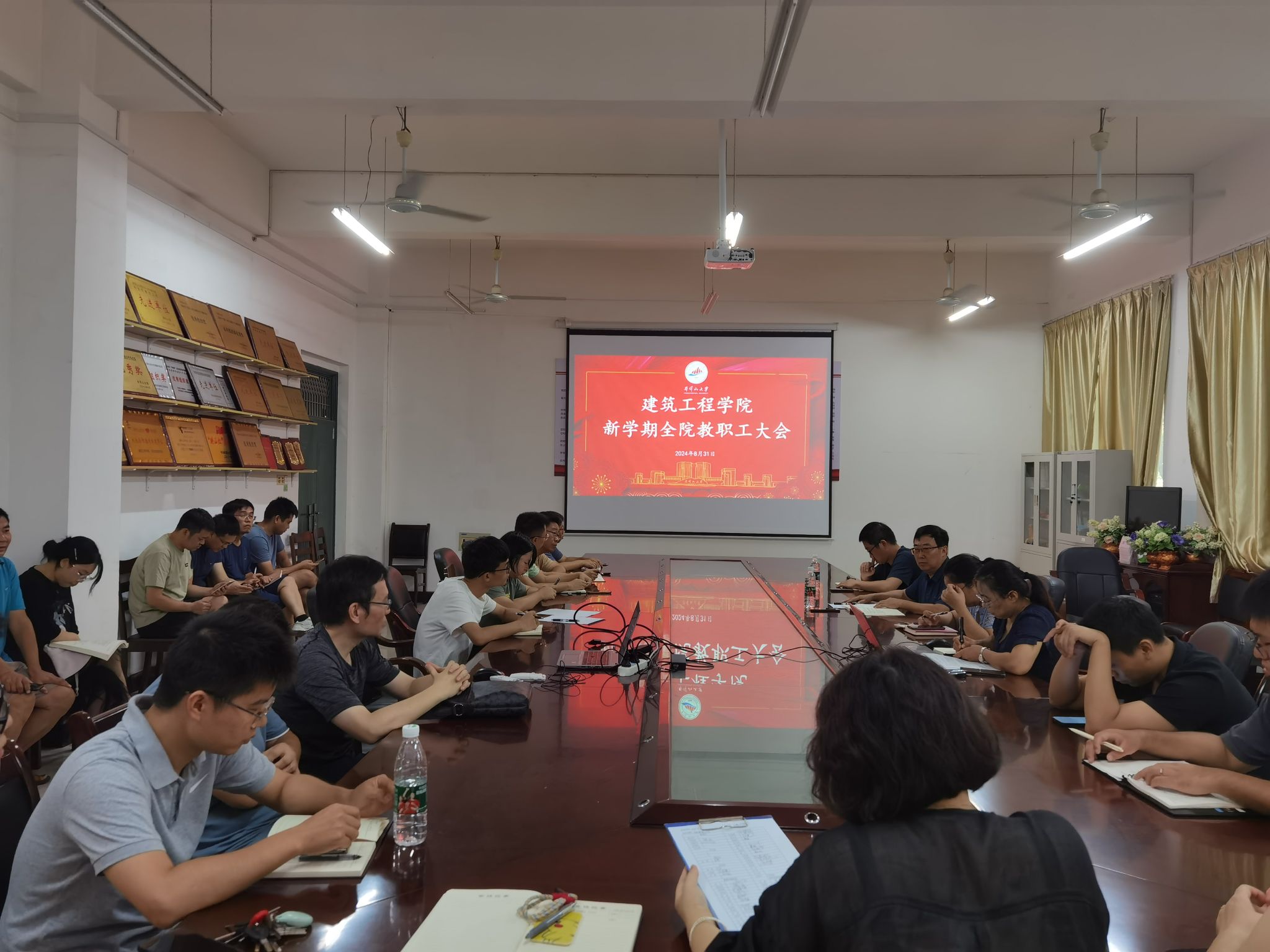 8月31日上午,建筑工程学院在12栋会议室召开新学期第一次全院教职工大会,学院全体教职工参加会议。会议由学院党委书记陈京平主持。