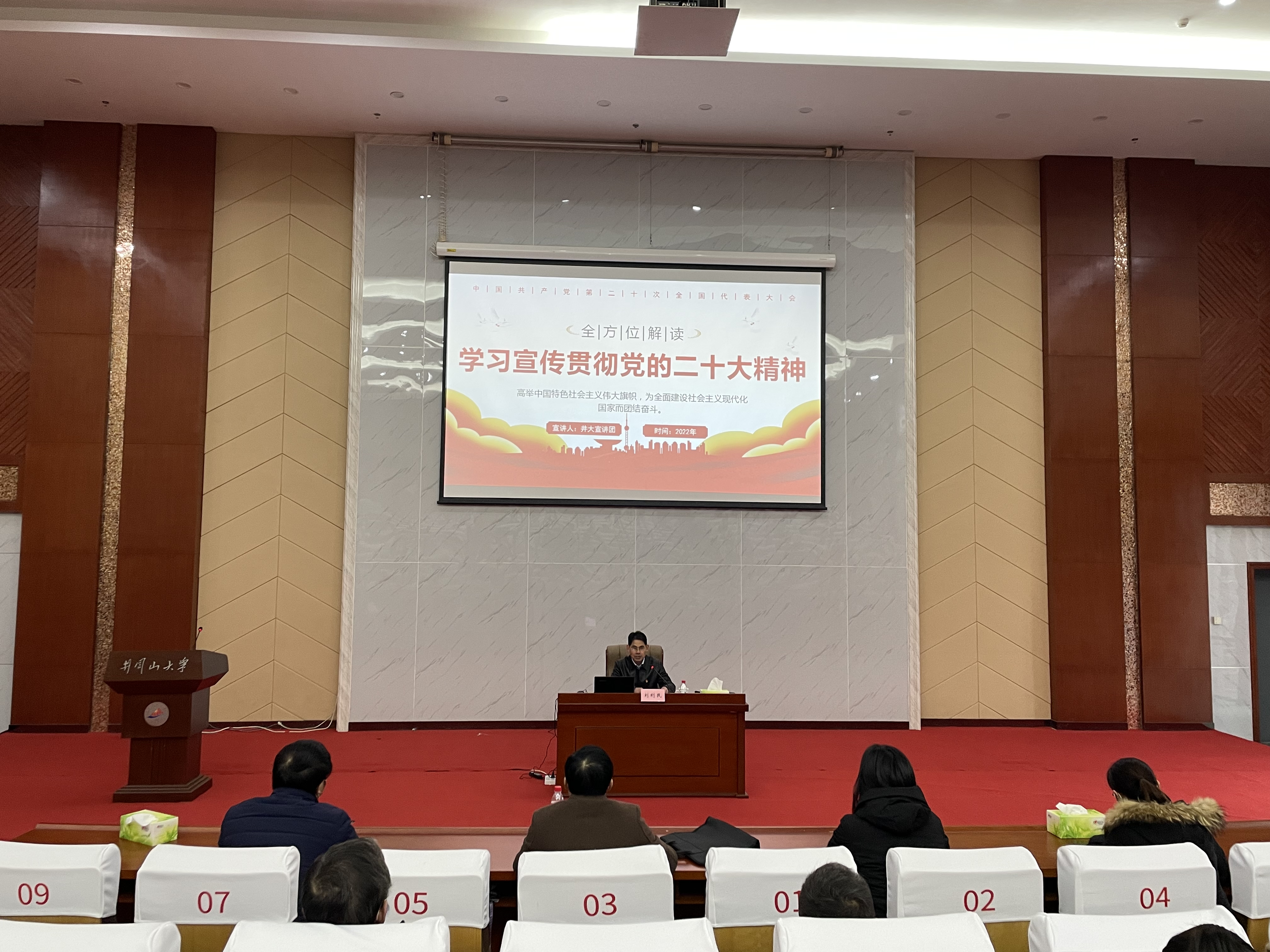 为深入学习宣传贯彻党的二十大精神,12月1日下午,学校党委常委、副校长刘利民深入联系学院党委为建筑工程学院师生宣讲党的二十大精神。建筑工程学院党委书记陈京平主持,建筑工程学院全体教职工、学生代表200余人聆听宣讲报告。