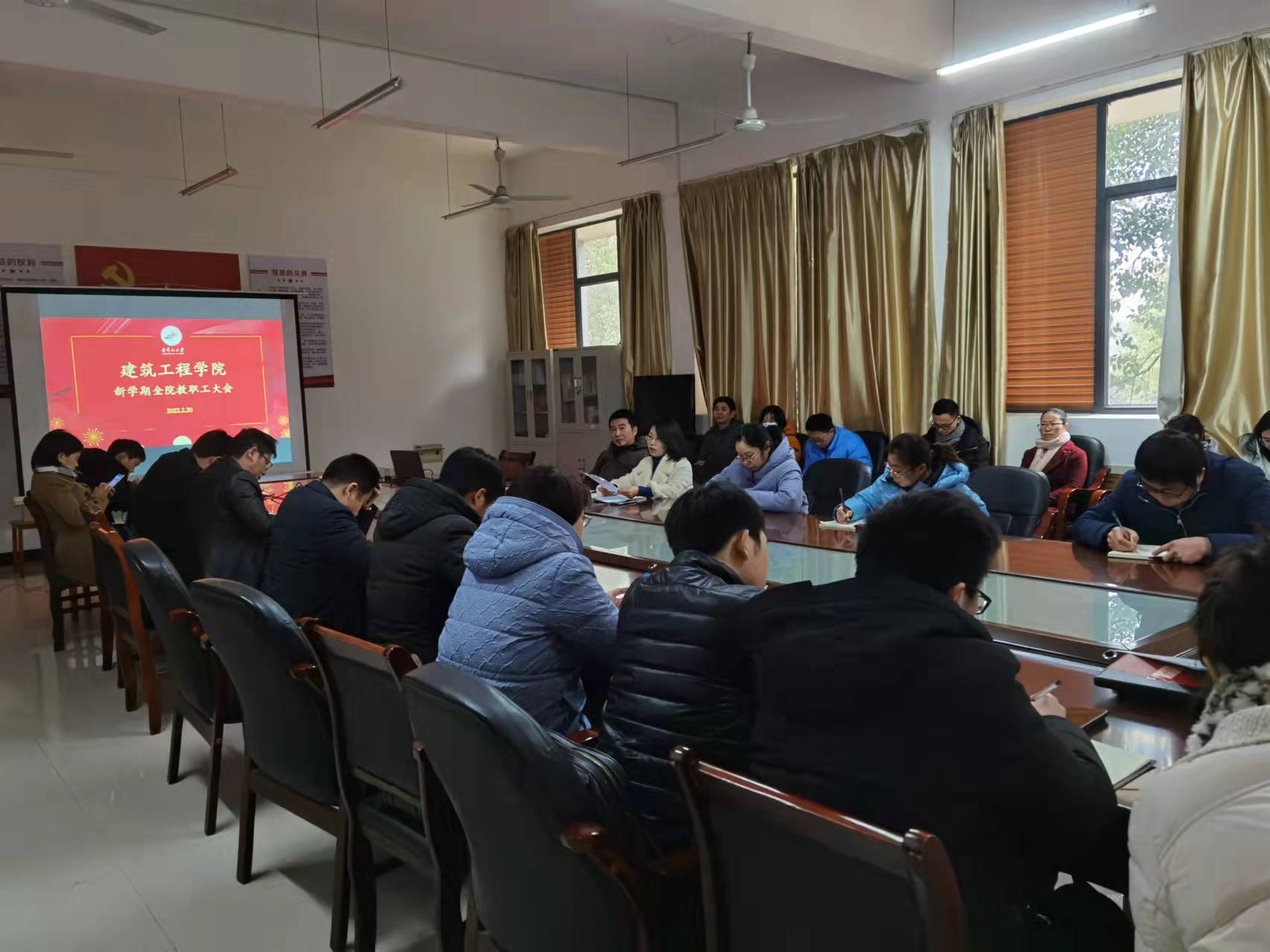 2月20日上午,建筑工程学院在12栋会议室召开了新学期第一次全院教职工大会,学院全体教职工参加会议。会议由学院党委书记欧阳凌主持。