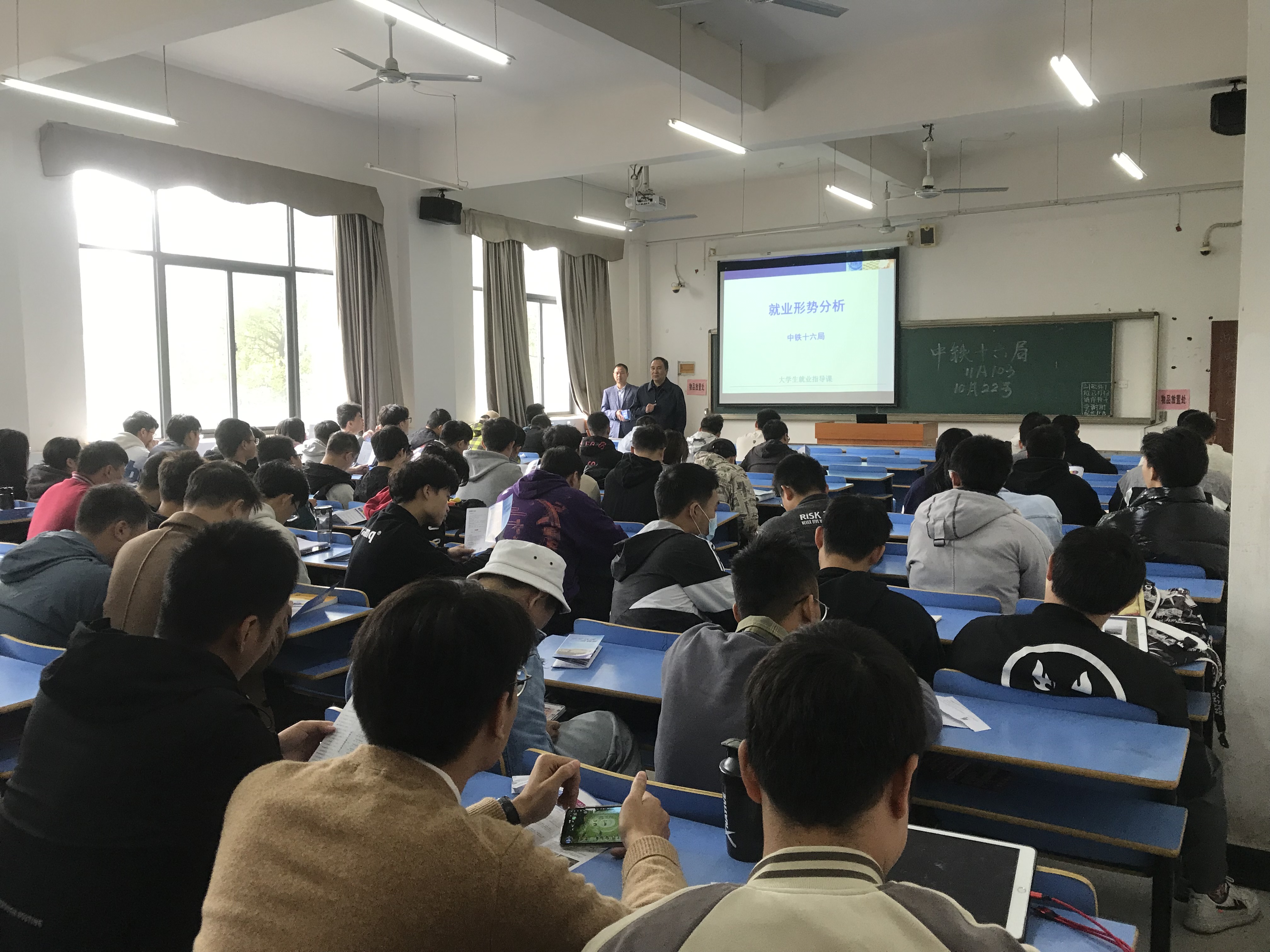 2021年10月22日上午11点,中铁十六局集团有限公司下属第四公司、城建公司、路桥公司等三家企业专场招聘会在11A103召开,我院18土木工程3班、18工程管理2班全体同学参加。
