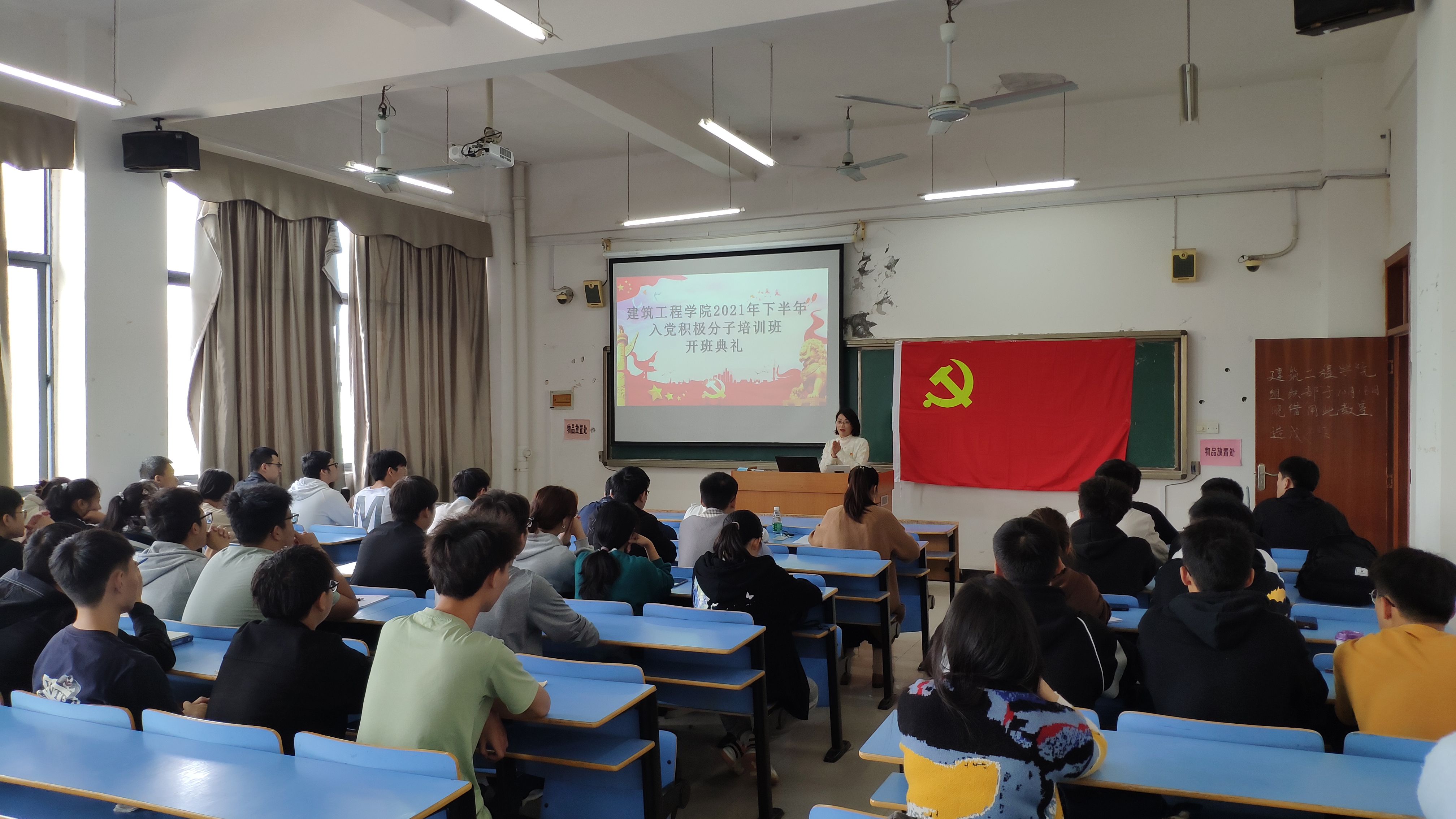 为进一步加强对入党积极分子的培养、教育和考察,端正入党积极分子入党动机,坚定入党决心,提高入党积极分子的思想政治素质与党性修养。10月26日下午,建筑工程学院举办入党积极分子培训班开班典礼。学院党委书记欧阳凌、专职组织员、各支部书记及各党支部30余名入党积极分子参加了开班典礼。学院专职组织员涂凰介绍了培训班纪律与注意事项,学员代表常国荣发言。欧阳凌向学员们提出三点希望,她勉励入党积极分子要在培训班期间端正态度,切实增强学习培训的自觉性;明确目标,努力提高学习培训效果,进一步提高自身思想水平和政治素养,更加坚定共产主义理想和信念;严格要求自己,圆满完成本次培训学习任务,学有所得、学有所思、学有所成、学以致用,从根本上了解党,从思想上认可党,从情感上热爱党,从行动上追随党。