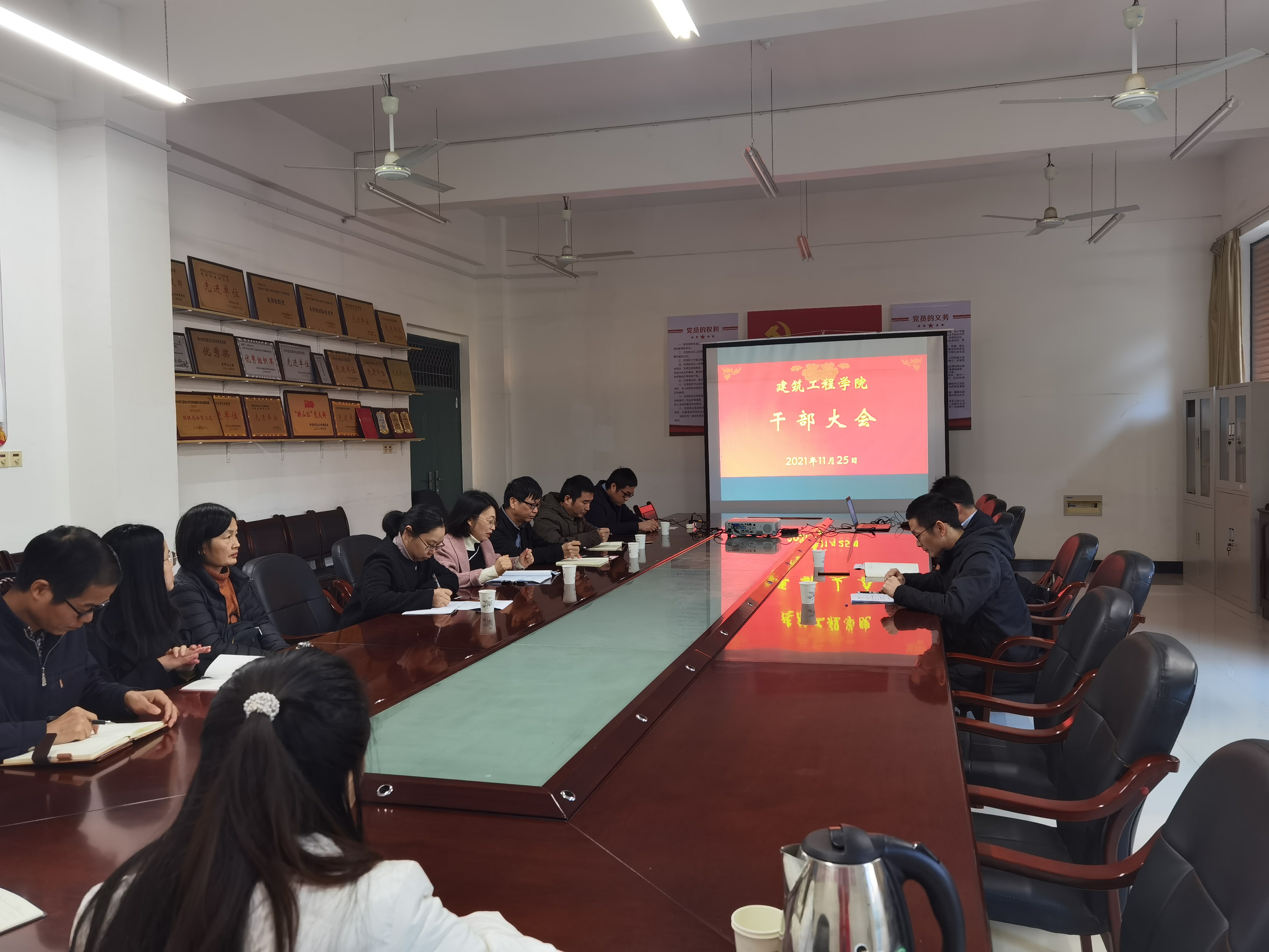 11月25日上午,建筑工程学院召开干部大会。学校党委常委、副校长刘利民,学校党委组织部组织科科长康敏昌,建筑工程学院班子成员、科级干部、教研室主任、其他行政办公人员参加会议。