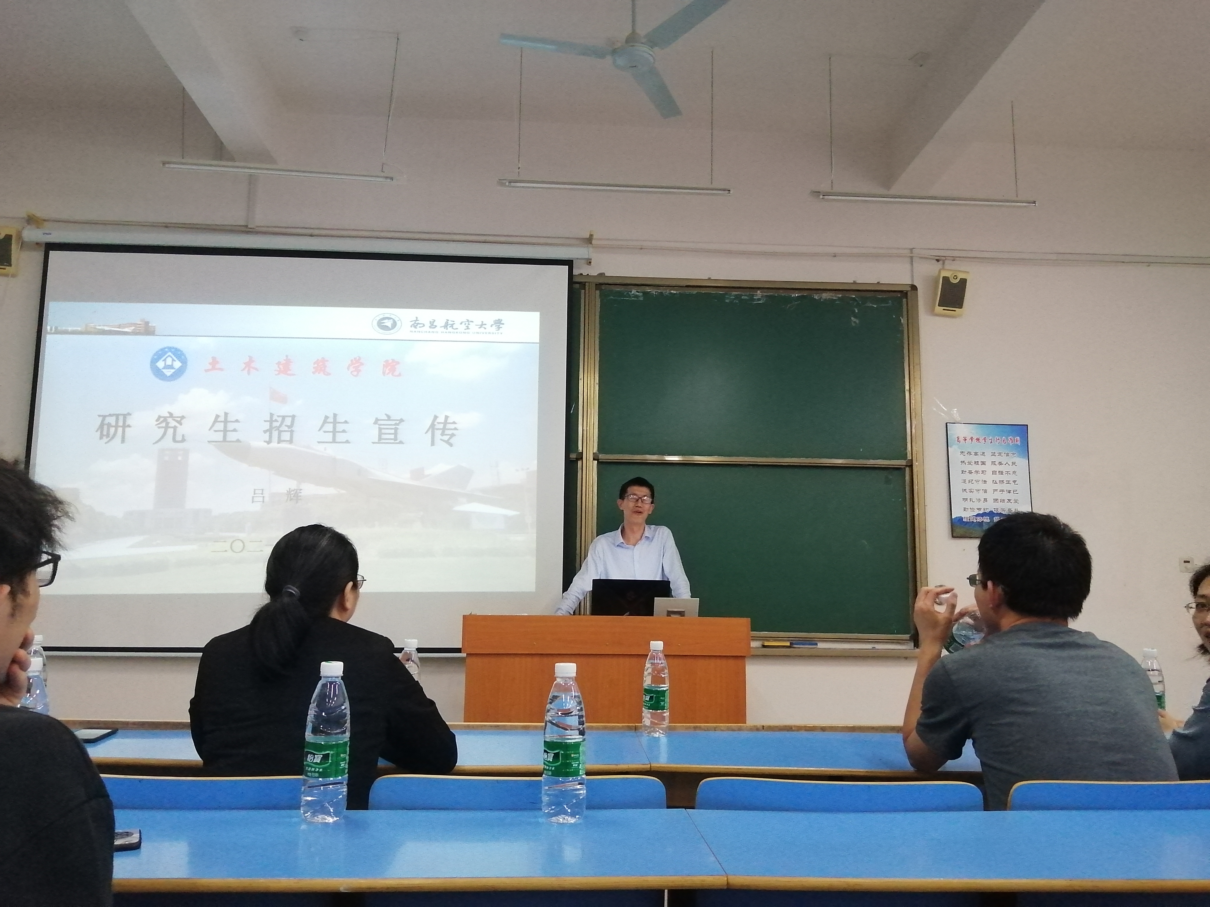 晚上,吕辉一行参加了学院2021年考研总结暨动员大会,吕辉介绍了南昌航空大学土木建筑学院硕士招生情况,并欢迎学院学生报考。
