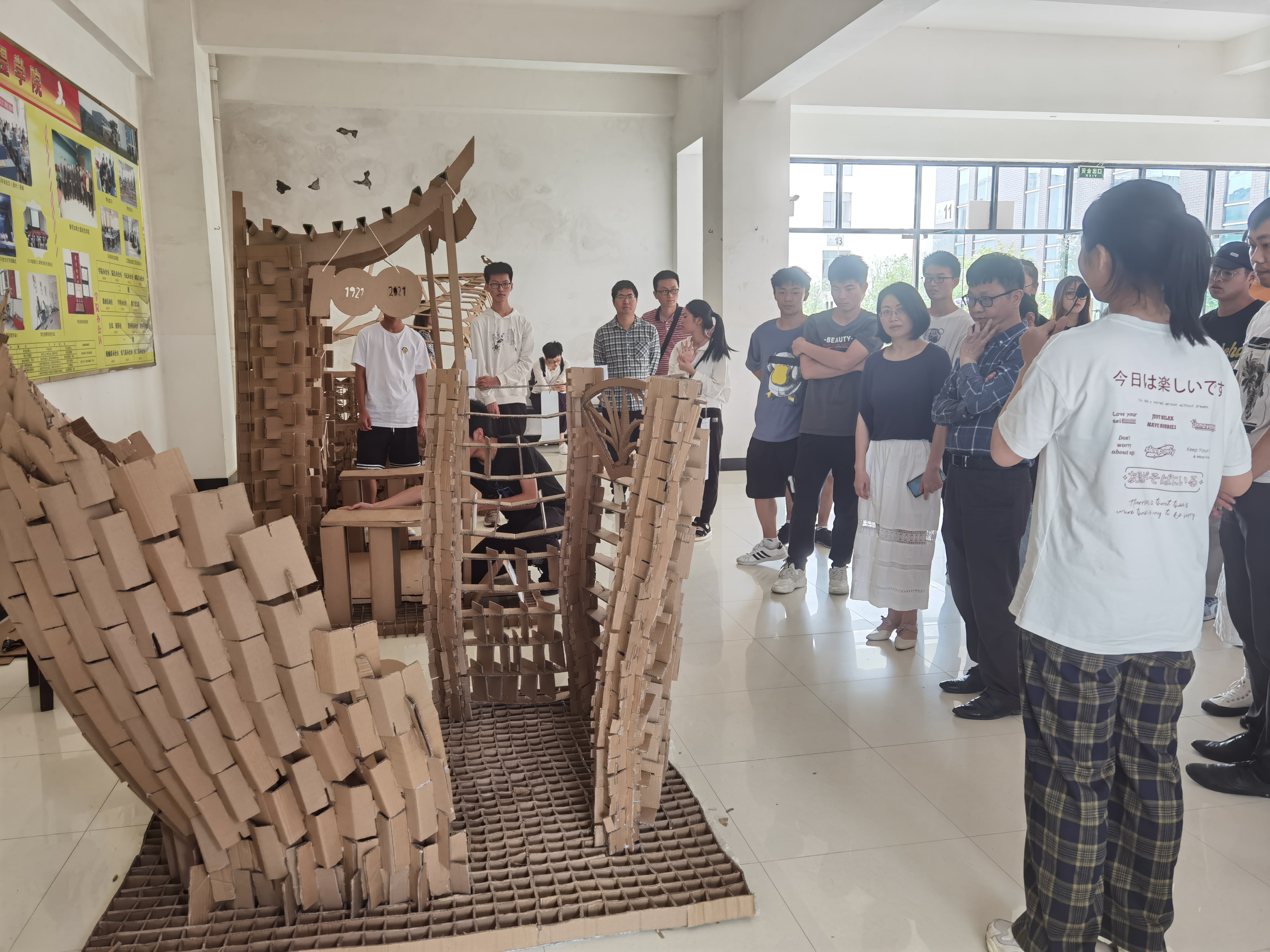 比赛以团队为单位竞赛,以点带面、以静物重现历史过程、以专业培养推动史实掌握,是提升广大师生党史学习效果的生动尝试。参赛选手们通过模型的制作,运用所学的建筑模型知识,深情回顾党的百年奋斗史。5月31日,在教学楼11栋大厅展览现场,参赛选手向参观者介绍作品的建筑风格、构造、特点及其背后的红色故事,由专业老师进行点评,以小程序投票的形式决出优胜者。布展的作品题材以红色为主、风格多样、独具匠心。作品的背后,是师生们对该建筑所发生的重要历史事件的深度探究。
