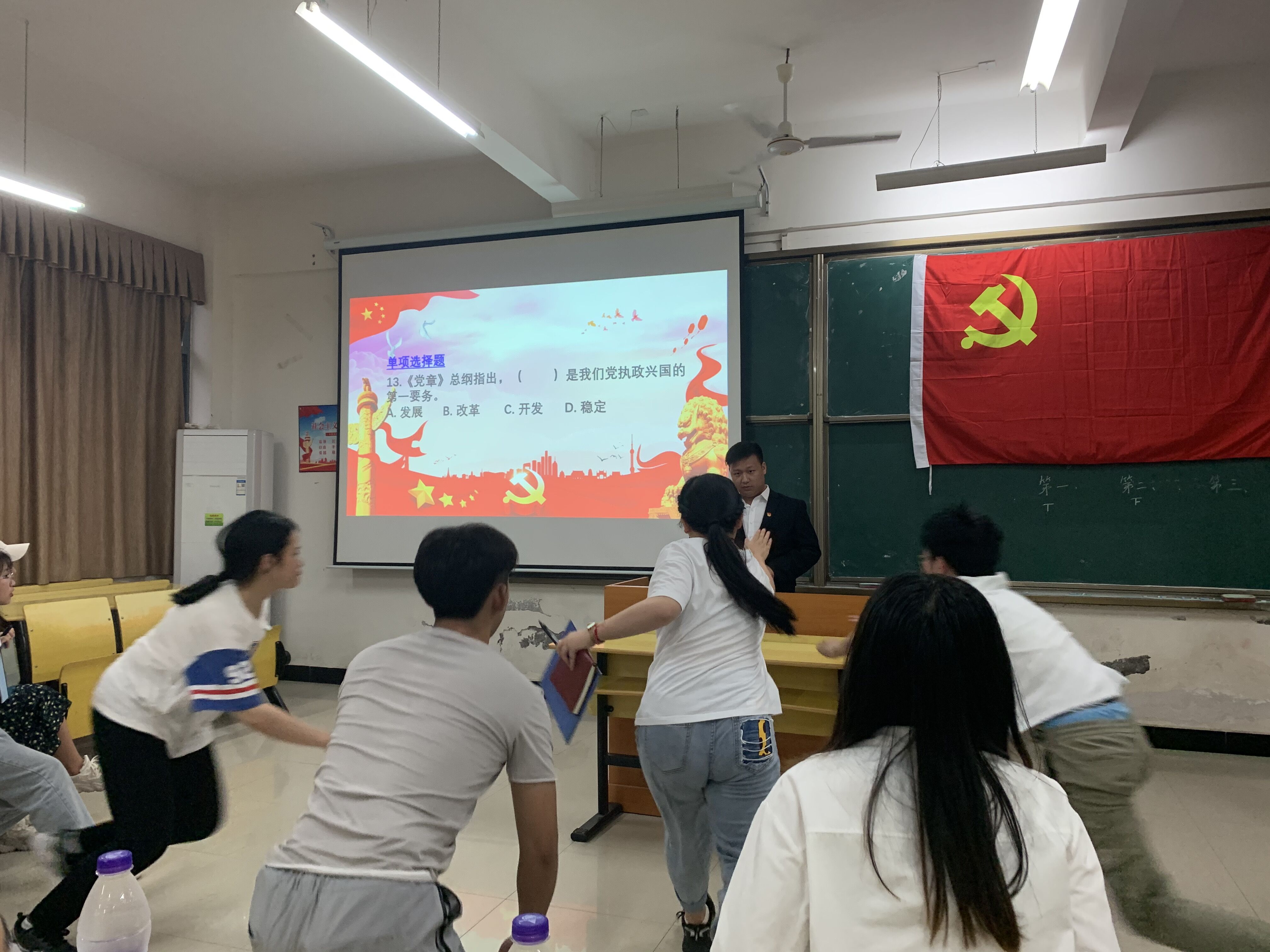 知识竞赛前,建筑工程学院党委还组织全体党员认真学习学校党委组织部5月“主题党日”指定学习内容,邀请马克思主义学院中国共产党历史专业两名毕业班学生为全体党员讲了主题为“共产党早期组织的建立及活动”和“中国共产党的一大”的微党课。