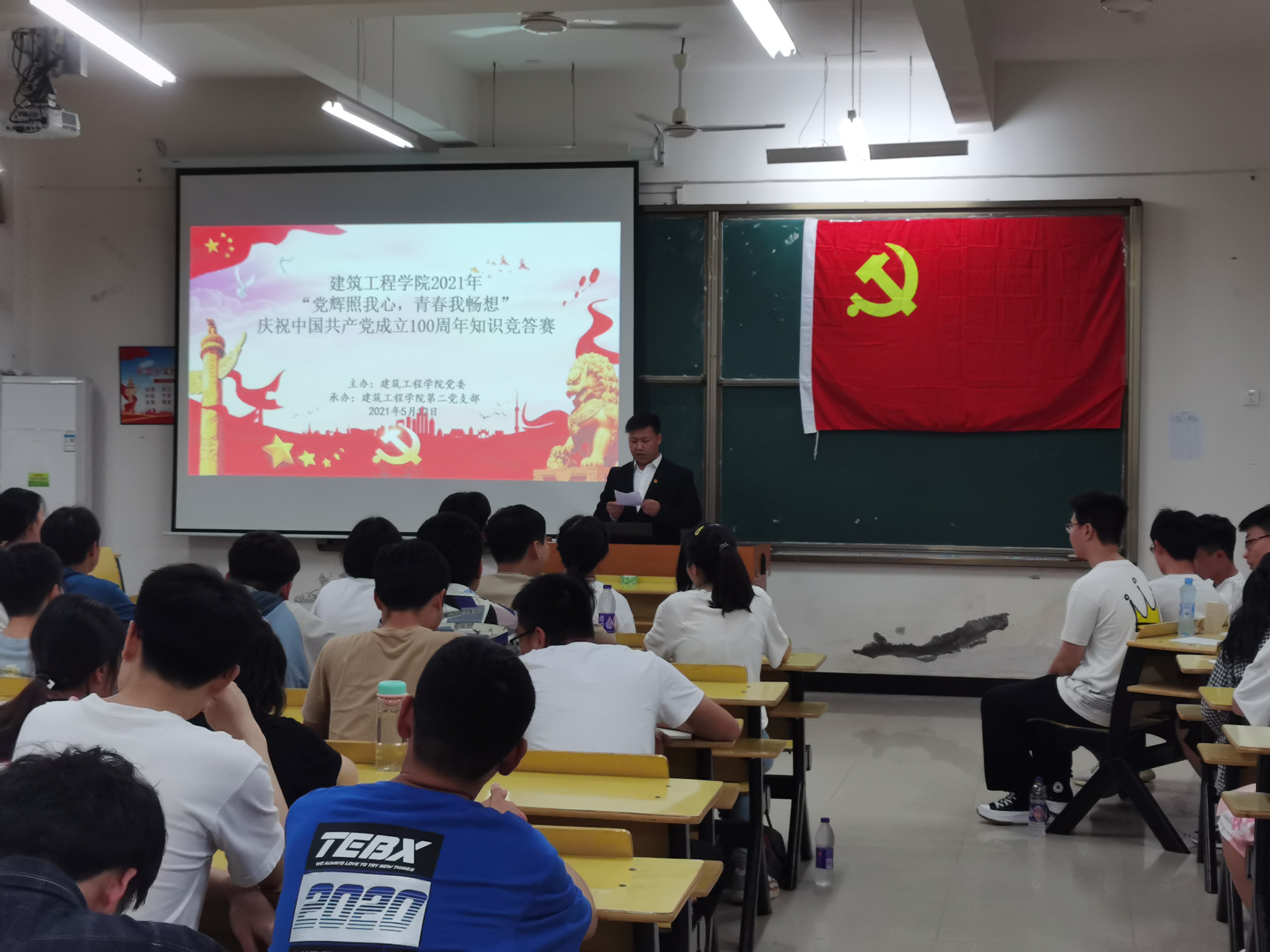 为庆祝中国共产党成立100周年,加深广大党员对党的历史、党的知识、党的理论和路线方针的认识,深入推进党史学习教育,5月12日,建筑工程学院党委在20栋108开展主题为“党辉照我心,青春我畅想”党史知识竞赛。