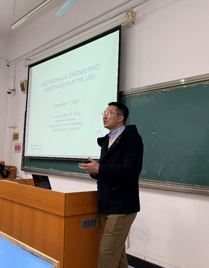 本次报告主题是《美国岩土工程勘察-以天然气项目为例》。林城博士首先介绍了美国岩土工程咨询公司开展岩土勘察项目的基本流程,然后以美国某天然气能源项目为例,详细介绍了岩土勘察中常用的原位测试技术和室内试验方法,以及基础稳定、边坡稳定、地震灾害影响等一系列岩土数值分析方法,最后基于数据分析为该项目提出设计和施工建议。他希望同学们在专业学习中更多地结合工程实际进行思考,并将所学知识应用于实践之中。会后,林城博士还同在场师生进行了热烈的讨论。