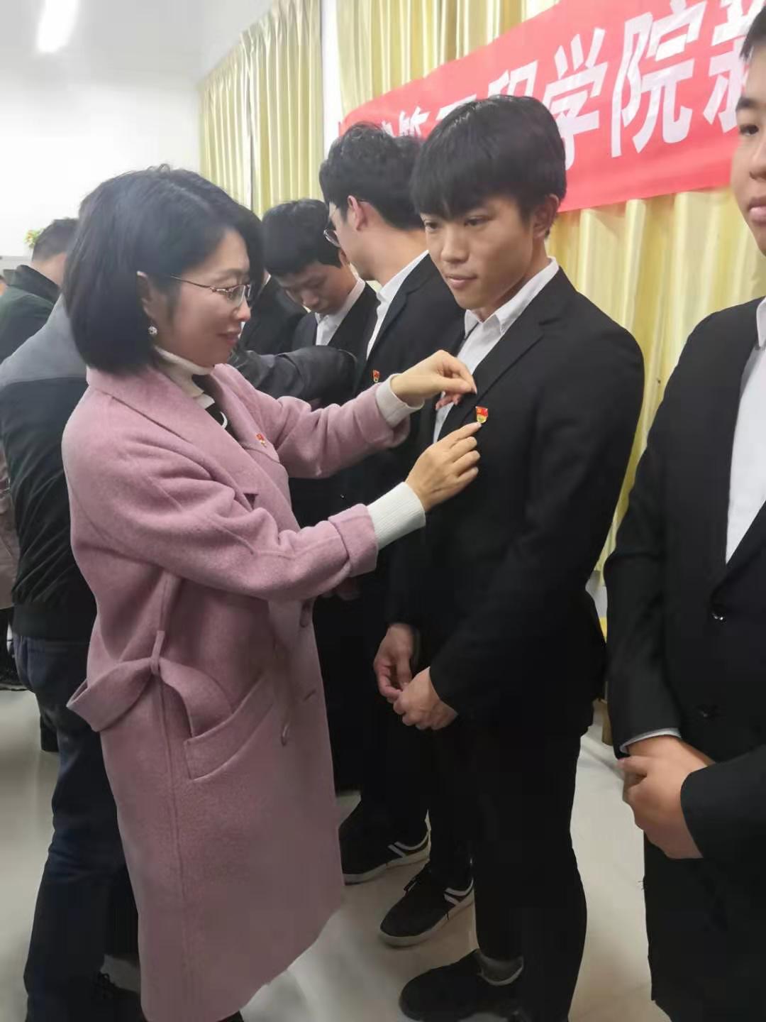 活动由第三党支部书记彭海燕主持,通过“戴”、“温”、“唱”、“学”、“忆”、“讲”六个环节进行。一是老党员为新党员佩戴党员徽章,增强入党仪式感;二是入党宣誓,面对党旗许下诺言,从而进一步坚定理想信念,时刻牢记为共产主义事业奋斗到底的崇高理想;三是齐唱《我和我的祖国》,深切感受那响彻寰宇、激荡的主旋律带给共产党人心灵的震撼和灵魂的洗礼;四是观看模范先进典型代表的影像资料,通过榜样的力量激发党员生活热情和无私奉献精神;五是追忆入党初心,谈理想、谈信念、谈感受,时刻牢记自己是一名共产党员;六是讲党课,鼓舞士气、坚定信念、振奋精神、凝心聚力,在征程中不断前行。