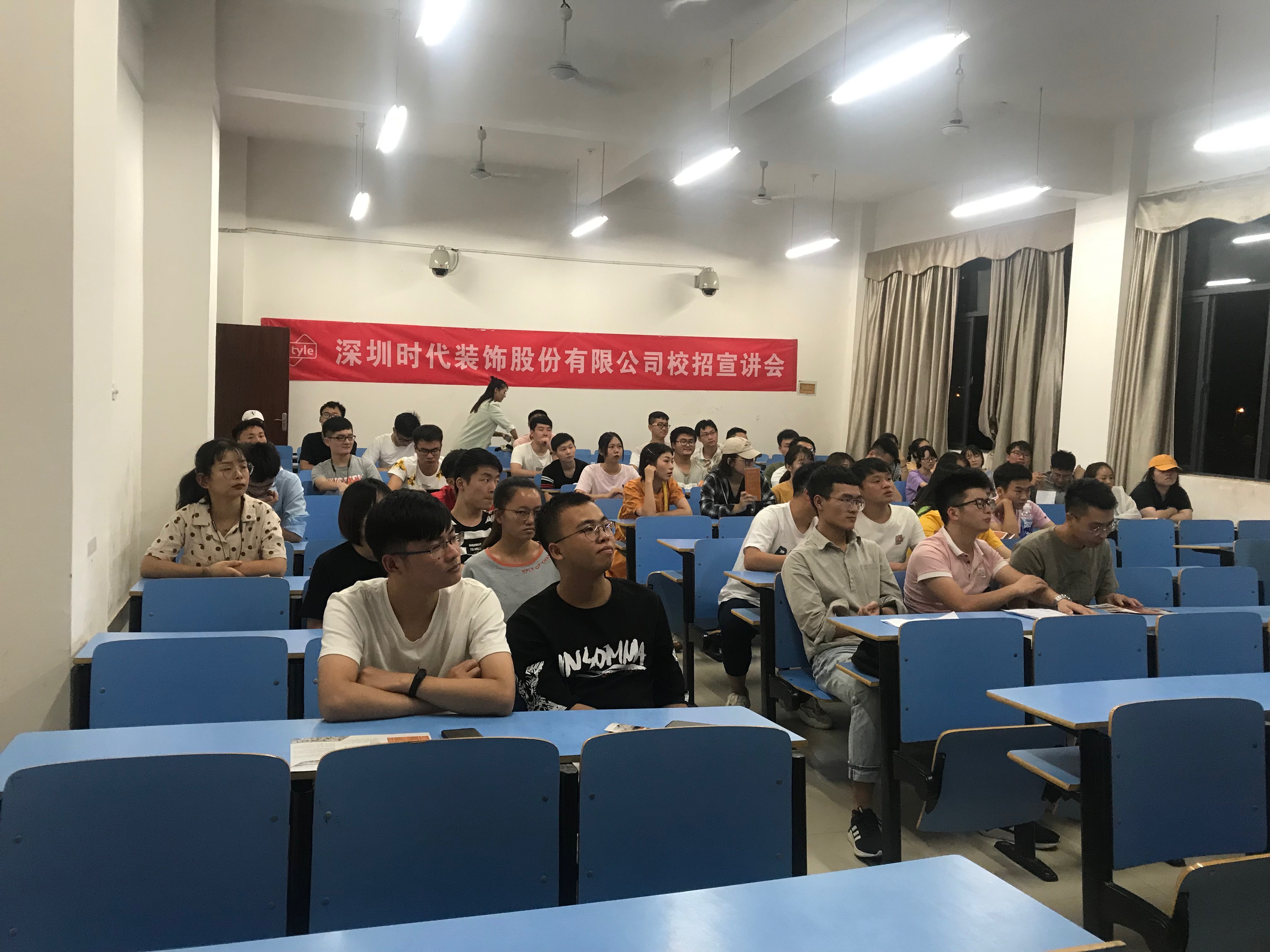 深圳时代装饰股份有限公司于2019年9月24日(星期二)晚上7:30在11A101召开我院2020届毕业生现场招聘会,我院2020届毕业参加了招聘会宣讲。