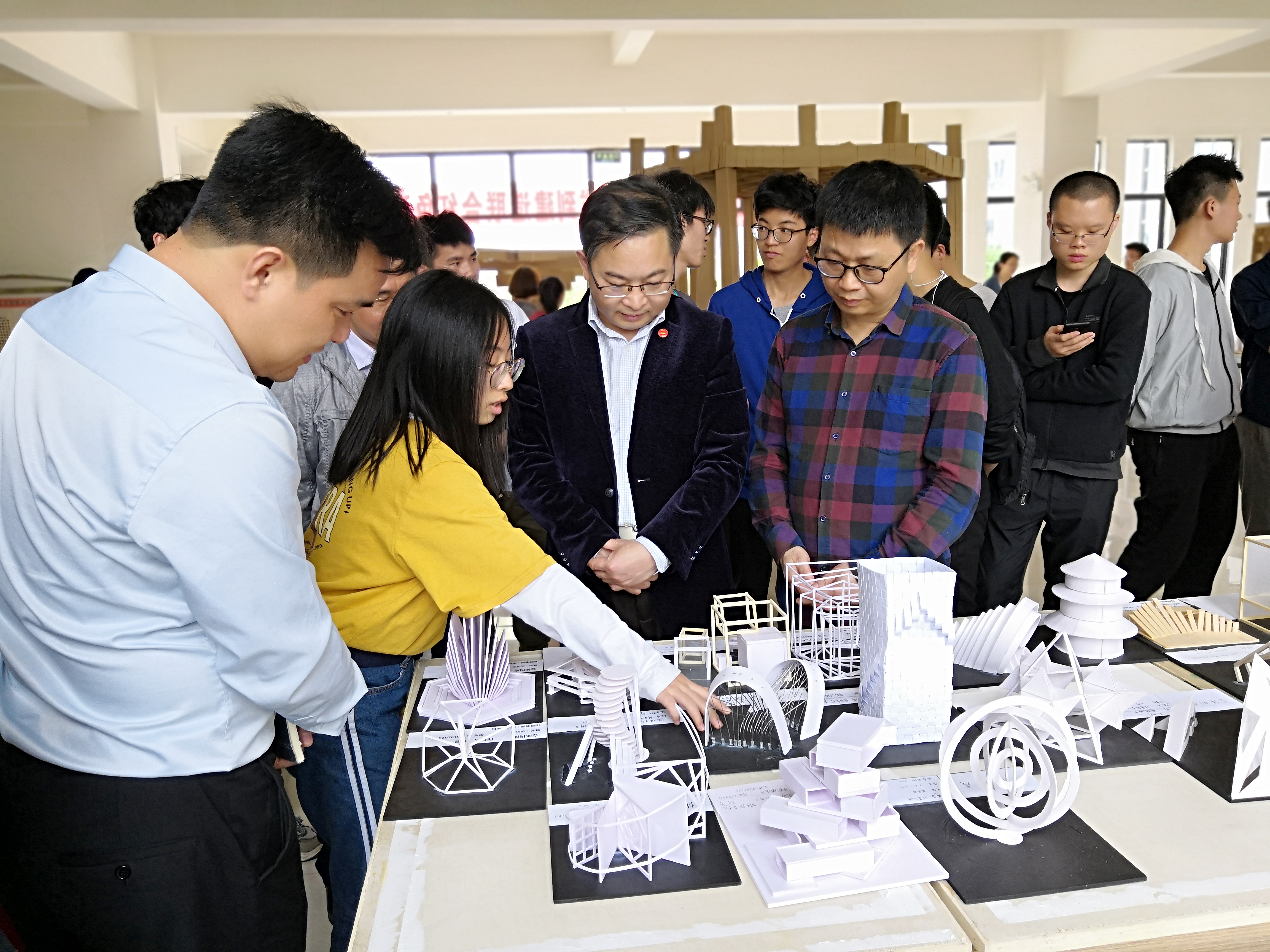 2019年5月9日,建筑工程学院建筑设计基础教学成果展在建筑工程学院11栋大厅举办,校长曾建平、副校长肖宜安出席展会,建筑工程学院院长王珍吾、副院长罗春泳陪同参观,指导教师、模型作者和各专业学生近200人参加了展会。