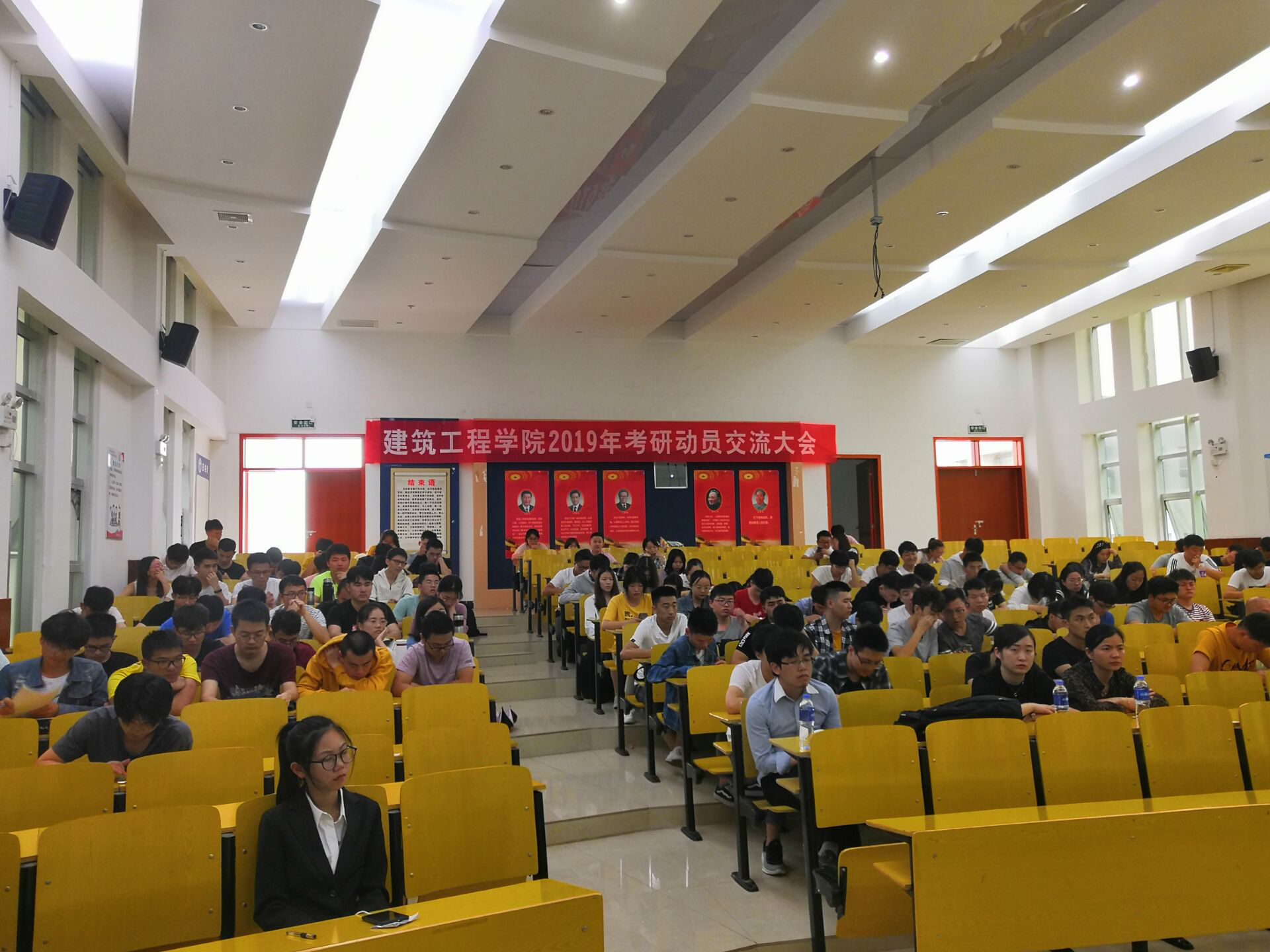 为充分调动建筑工程学院学生考研的积极性,营造浓郁的考研氛围,帮助同学们解决考研中遇到的问题,坚定同学们考研的信心,5月13日,建筑工程学院举行2019年考研动员交流会。建筑工程学院院长王珍吾等院领导,各专业教师代表,学院15级、16级班主任、辅导员,2019届考研学生代表,2020届全体毕业生,共计两百余人参加。