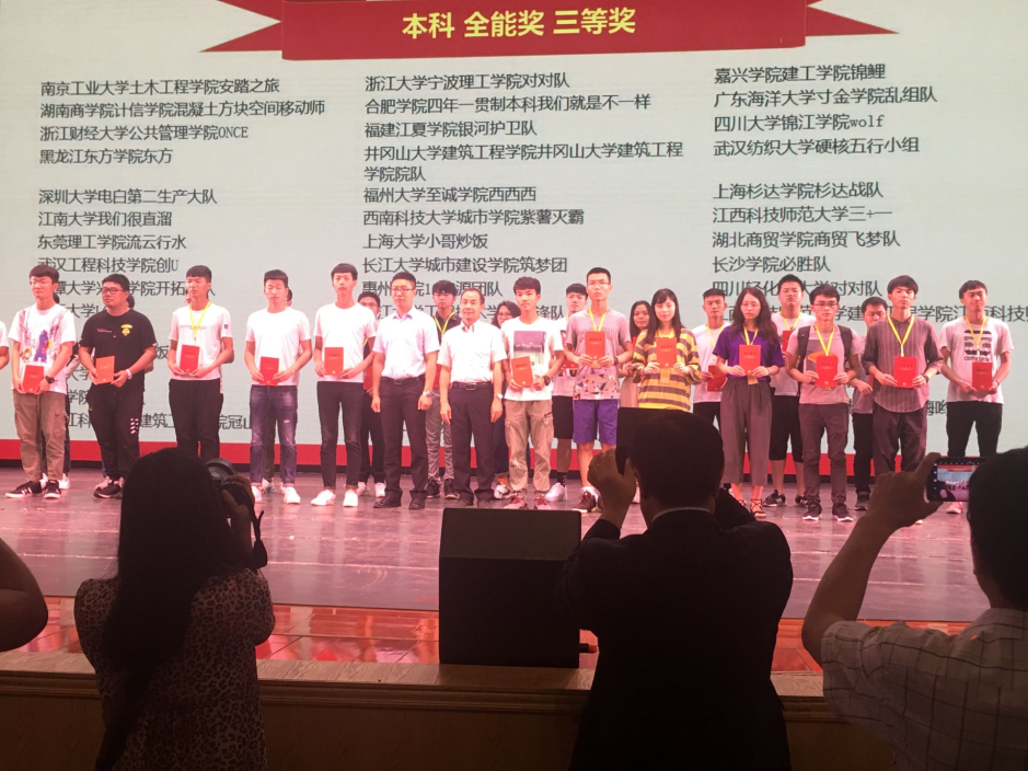 我院由建筑学(罗淦、郭嘉祥)、建筑环境与能源应用工程(刘云辉、钟威、张忠凯、周宇翔)、工程管理(夏宝华、熊天海)和土木工程(张学良、熊灿)四个专业十名同学组成的两支参赛队伍,在庞丽东、梁爱民、王珍吾,陈选、刘颖和黄文先五位老师的指导下,就《工程设计专项》、《绿色建筑分析专项》、《工程造价专项》、《工程管理专项》四项赛事与来自全国各高校的优秀代表展开了激烈角逐。最终获得了“斯维尔杯”建筑信息模型(BIM)应用技能大赛《绿色建筑分析专项》二等奖两项,“全能三等奖”一项、《工程设计专项》三等奖一项、《工程造价专项》三等奖一项、《工程管理专项》三等奖一项的佳绩。