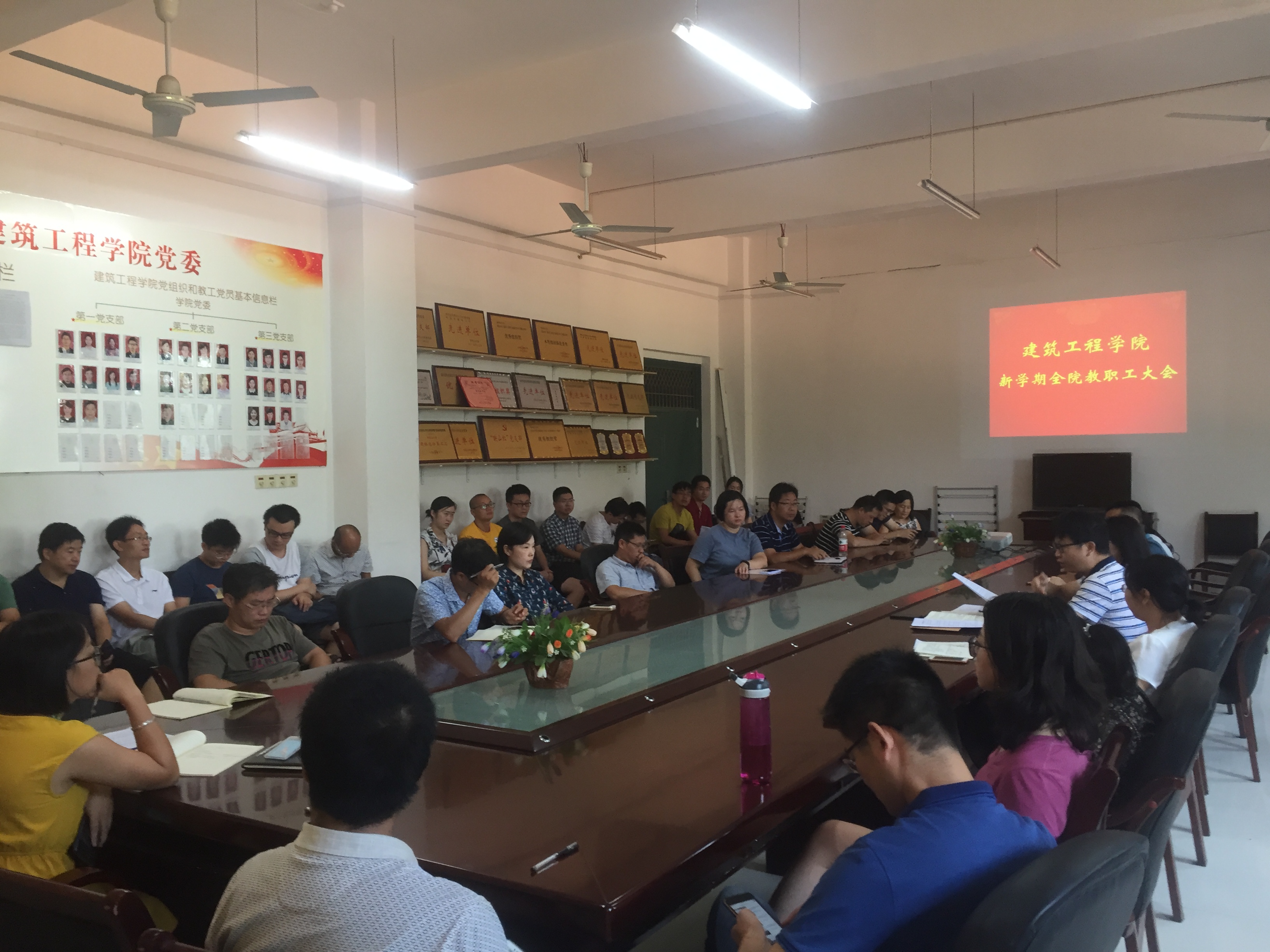 2019年8月31日上午,建筑工程学院在12栋会议室召开了新学期第一次全院教职工大会,学院全体教职工参加会议。会议由学院党委书记欧阳凌主持。