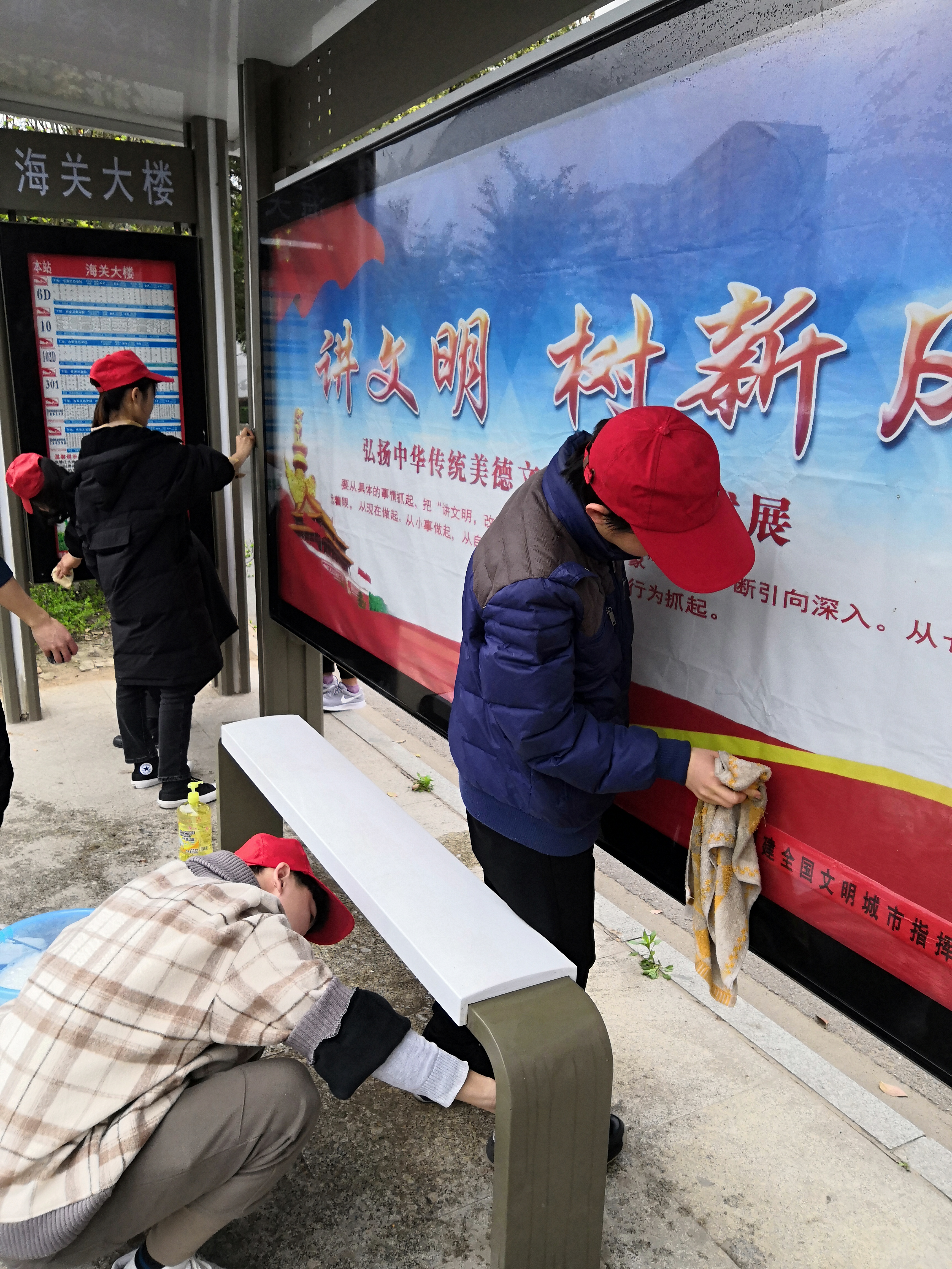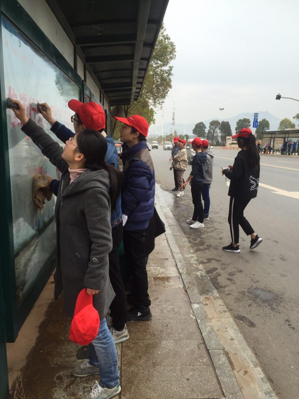 活动伊始,天空还下起了小雨,却难挡党员们的服务热情。师生们分工明确,一遍遍清洗站牌。在大家齐心协力下,顺利完成了对两个站台的清理工作。清理后的公交站台焕然一新,美化了城市形象。